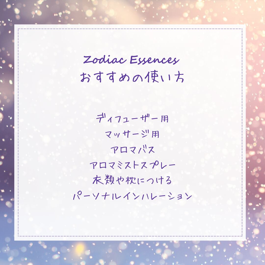 ★星座のエネルギー活用: 星座に関連する精油を使い、そのエネルギーを最大限に引き出すことで、個性や特性をサポート。