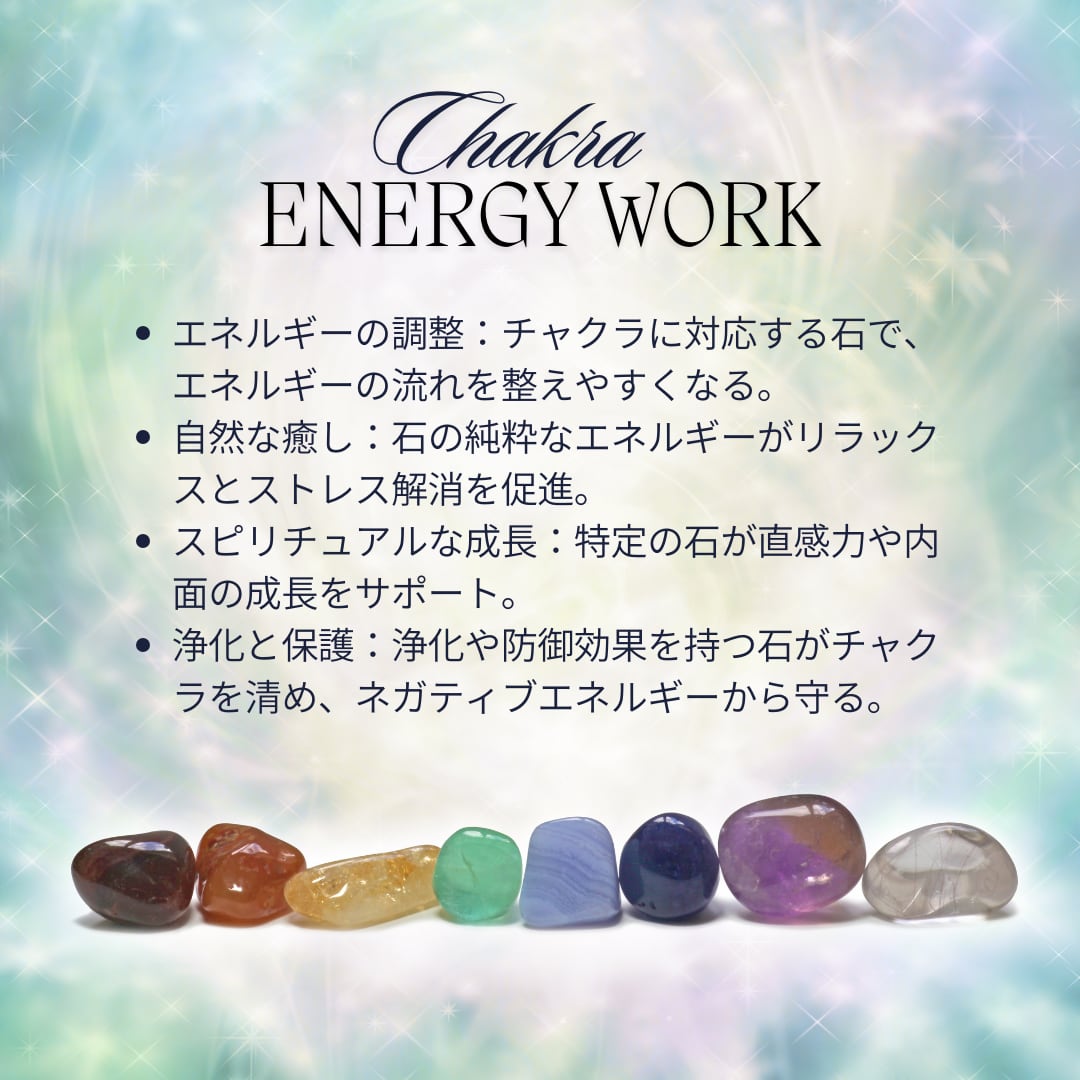 第7チャクラ(クラウンチャクラ)、第8チャクラ(ソウルスター)に共鳴し、高次の意識とつながる力を強化します。