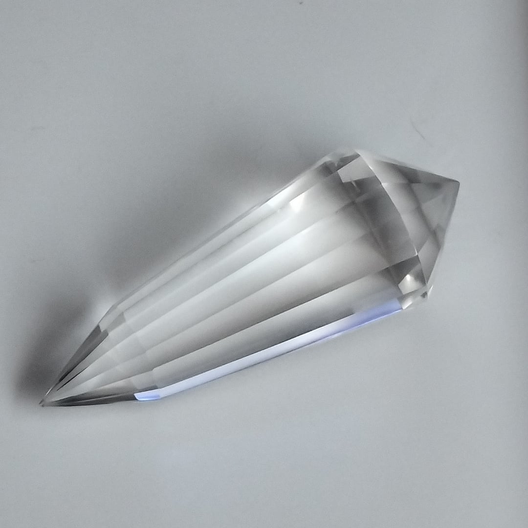 フォーゲルワンドは、両端が特定の角度で研磨されたダブルポイントの形状をしており、エネルギーを効率的に集め、放出する役割を持っています。この形状は、物理学者でありエネルギーワーカーのマーセル・フォーゲルによって考案され、エネルギーの流れを整え、癒しや意識の拡大に適しているとされています。