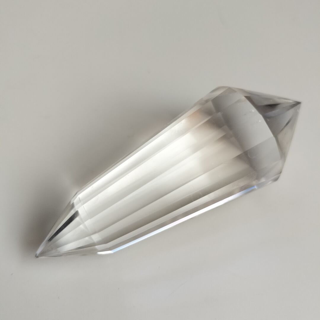 フォーゲルワンドは、両端が特定の角度で研磨されたダブルポイントの形状をしており、エネルギーを効率的に集め、放出する役割を持っています。この形状は、物理学者でありエネルギーワーカーのマーセル・フォーゲルによって考案され、エネルギーの流れを整え、癒しや意識の拡大に適しているとされています。